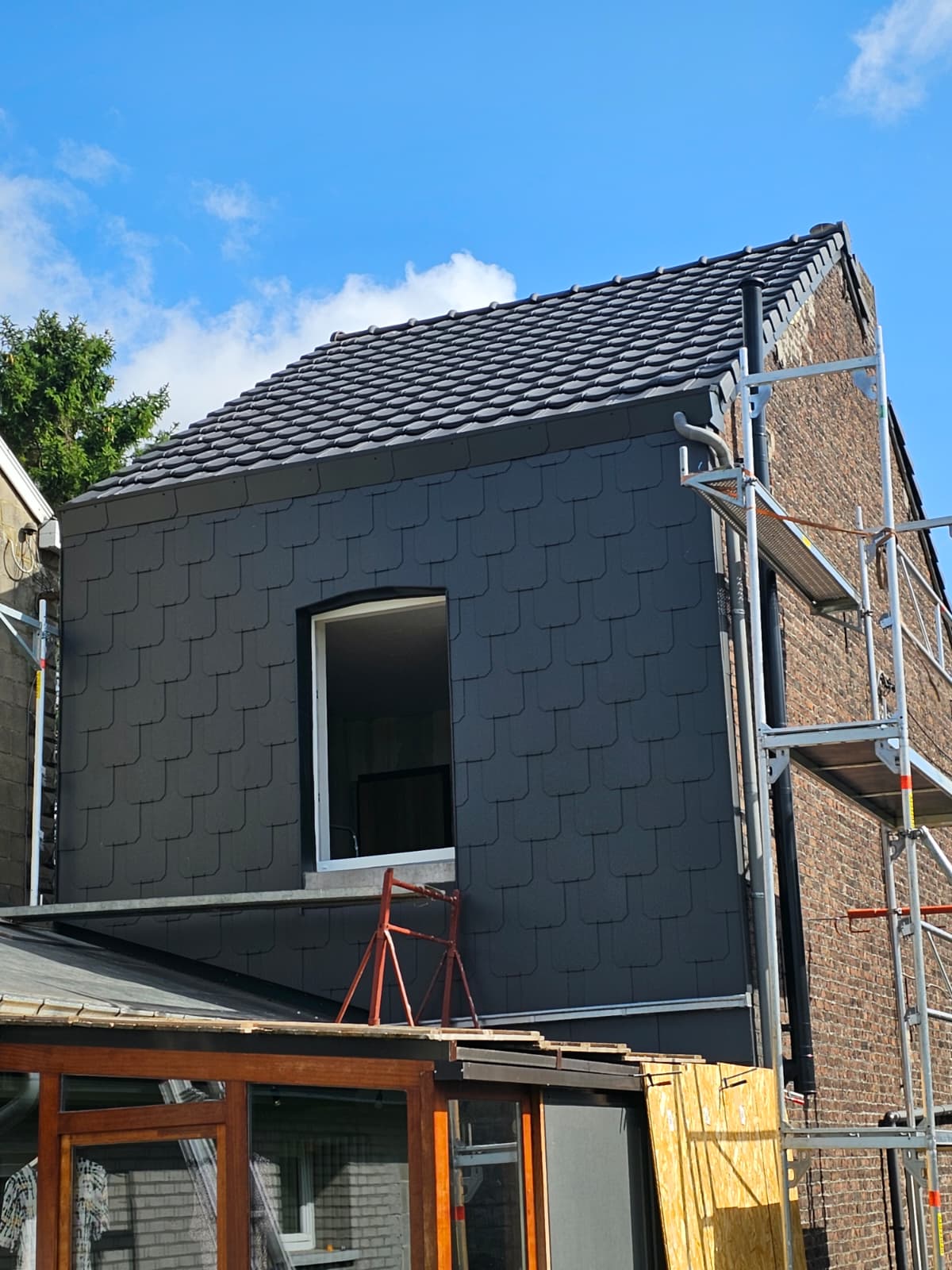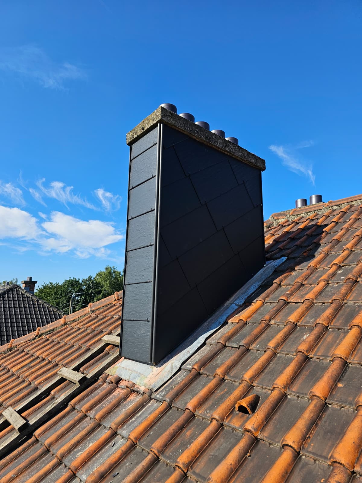 Recouvrement d’une cheminée en ardoises